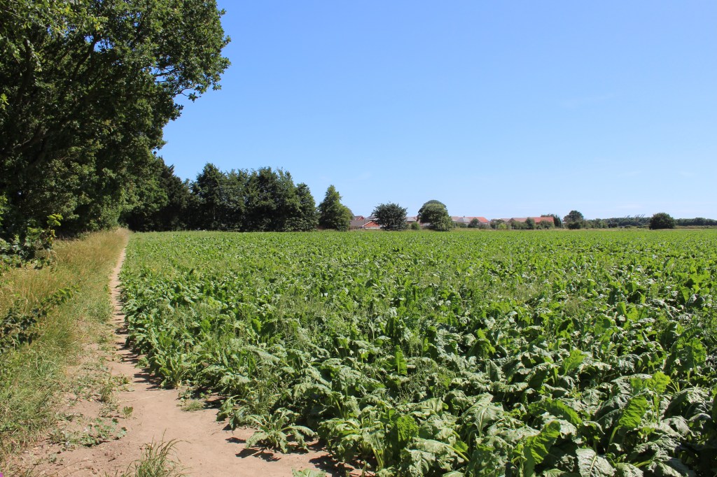 And so it fell about I found myself one shining morning, almost exactly eight years ago, setting off on a short walk across the field opposite The Hand in Hand. I aimed to return home via Gun Lane. In 1807 at the time of the Enclosure Awards for the Trimleys, Kirton and Nacton the field was identified as belonging to the Allens and this name has been adopted as one of the road names on the Poppy Field development. It had several millennia of supporting crop growth to feed the local population. It now has a different function.